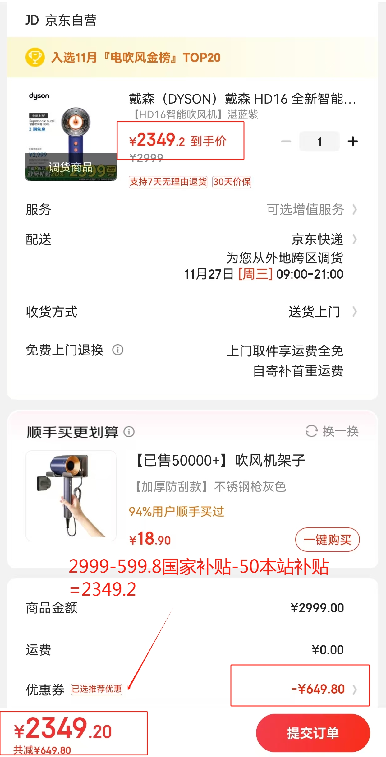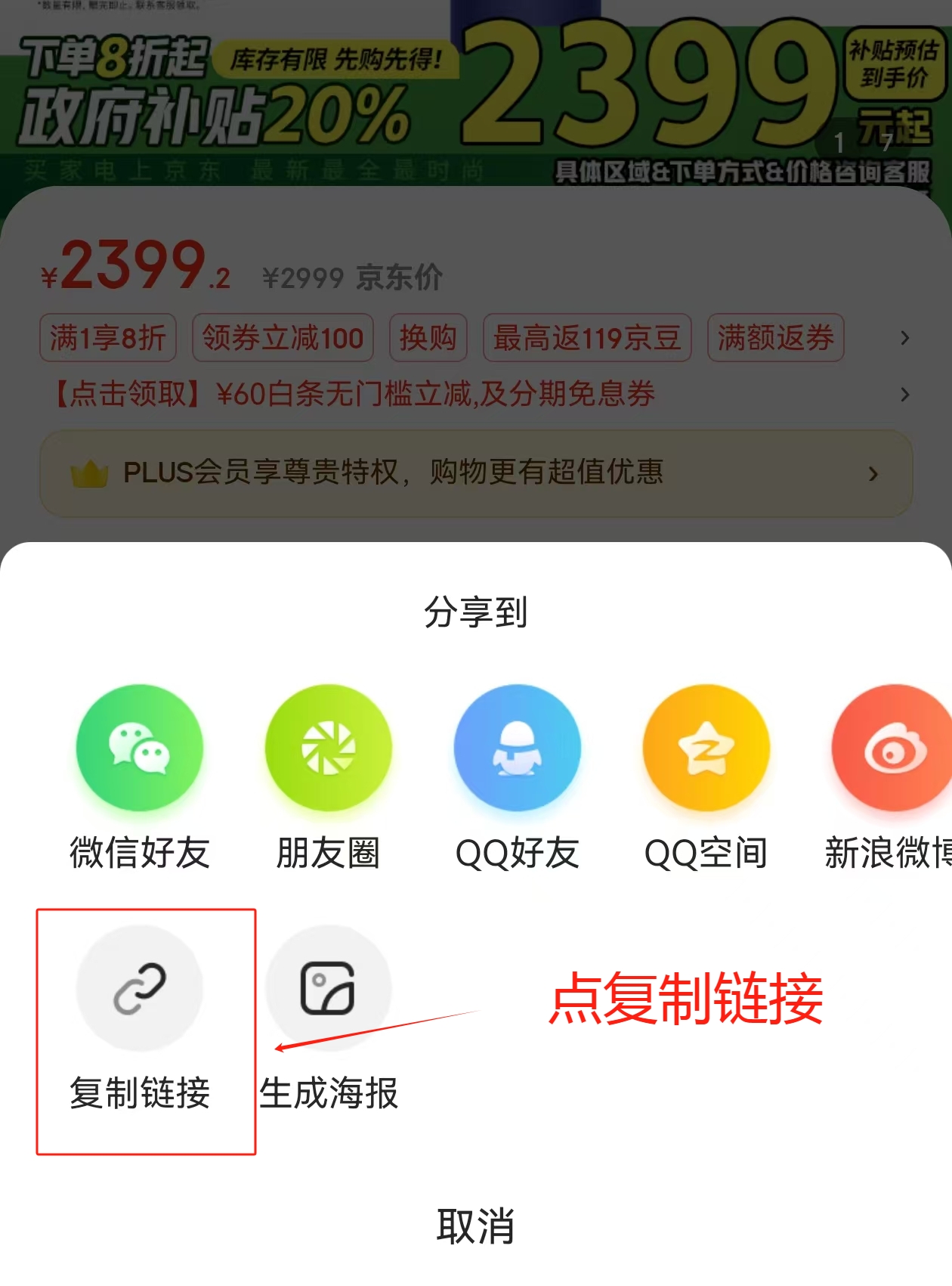 (五)我们通过邮件回复带有优惠券的京东官方链接,打开链接,领取下单即可享专属优惠。原价2999元-国家补贴599.8-本站补贴50元=2349.2元。赶快试试~
